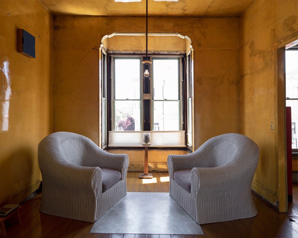 En 1975, l’artiste conceptuel David Ireland (1930-2009) achète une maison construite près d’un siècle plus tôt dans le quartier The Mission à San Francisco. Pendant trente ans, il y explorera la notion de « travail à la maison », pourrait-on dire, en stabilisant ceci, en altérant cela, en retirant du papier peint ici, en ajoutant du vernis là, bref en mettant en scène mille et un détails, un processus méticuleux qu’il baptisera « activation ». Rapidement, comme notre Arthur Villeneuve (1910-1990) ou, dans une autre stratosphère, Sir John Soane (1753-1837), il fera des intérieurs de sa maison son oeuvre capitale (et la plaque tournante de toute une communauté artistique).